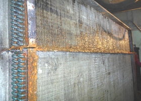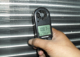 ประสิทธิภาพลดลง แอร์ไม่เย็น แผงคอยล์แตกรั่ว หรือชำรุดอุดตัน ฟินผุล้ม ทำให้ลมไม่ผ่าน อากาศไม่หมุนเวียน ลมจ่ายลดลง ไม่แลกเปลี่ยนความร้อน ความเย็นไม่เพียงพอ "ประสิทธิภาพ การทำความเย็นลดลง"