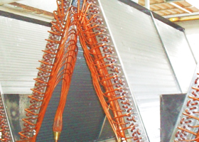 ประสิทธิภาพเครื่องปรับอากาศลดลง แอร์ไม่เย็น Coil ระบายความร้อนไม่ออกแรงดันน้ำยาด้าน High สูงเกิน (Over Heat ) แผงคอยล์แตกรั่ว ชำรุดอุดตัน ฟินผุล้ม เนื่องจากแผงระบายความร้อน เสื่อมสภาพ ไม่สามารถระบายความร้อนได้